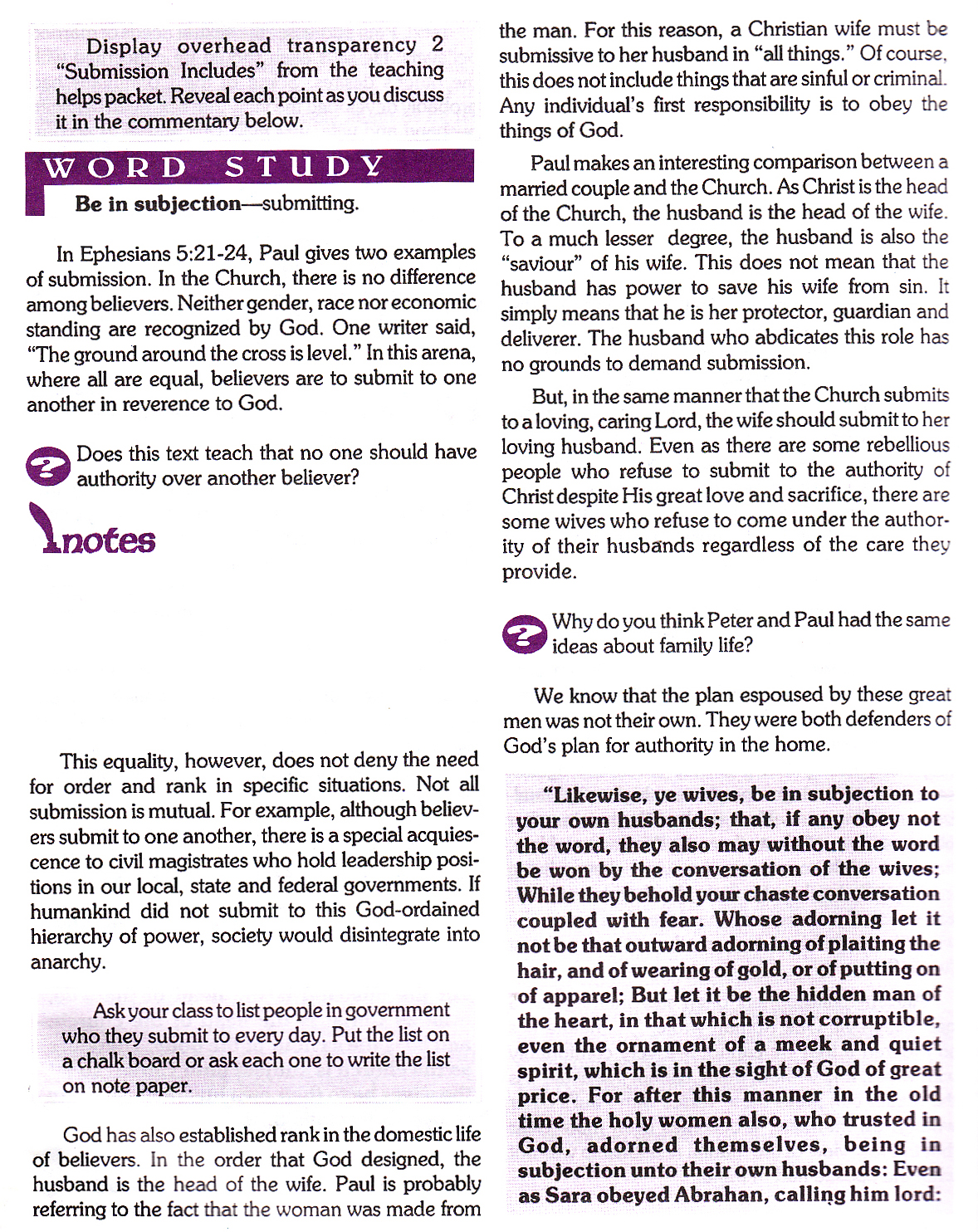 This is the Lesson I gave on Christian Family. I only used chapters 1-3 but I scanned the other chapters. This is from a Sunday School Quarterly I wrote in 1995. I hope it is helpful to you.