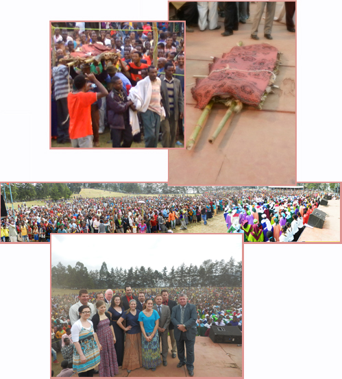 The test of faith, however, did not end when the money was raised. When the Martins reached Ethiopia there was civil unrest in the area of the campaign. They were supposed to head to LemLem the next morning. Everything was ready but the team couldn't get there. Protestors had blocked the only road into the area. Cars had been overturned. There was violence. It looked like the team would be unable to reach the crusade field. Larry sent out an urgent prayer request on Facebook and thousands of people began to pray. The team missed the first day of the meeting, but the town was ready! Thousands had already gathered. in the remaining four days, 6,207 people came to Jesus for the first time. Praise God! Again there were many mighty miracles. Every healing, every miracle is great in its own way, but some thing just take your breath away. One young boy in our prayer tent had been comatose, almost paralized, for three days. He had not moved a muscle. He was so weak and his breathing so shallow that a team member thought he died while he was praying for him. Thanks be to God the boy was completely healed and stood on the crusade stage and testified of God's goodness.