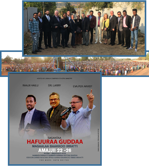 January 2016 found Larry and his team back in Ethiopia. The trip over was the most challenging yet, interrupted by an emergency landing and an eight-hour layover in Greece. The Harvest Revival Crusade was held in Shone. Once again, God moved mightily. About 5,000 souls came to Jesus for the very first time. There were many miracles on the field. You almost have to see it to believe it. It is incredible what God does in these mass-evangelism crusades.