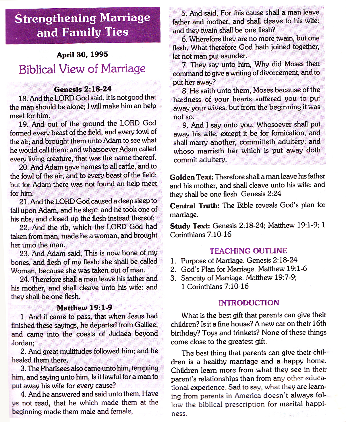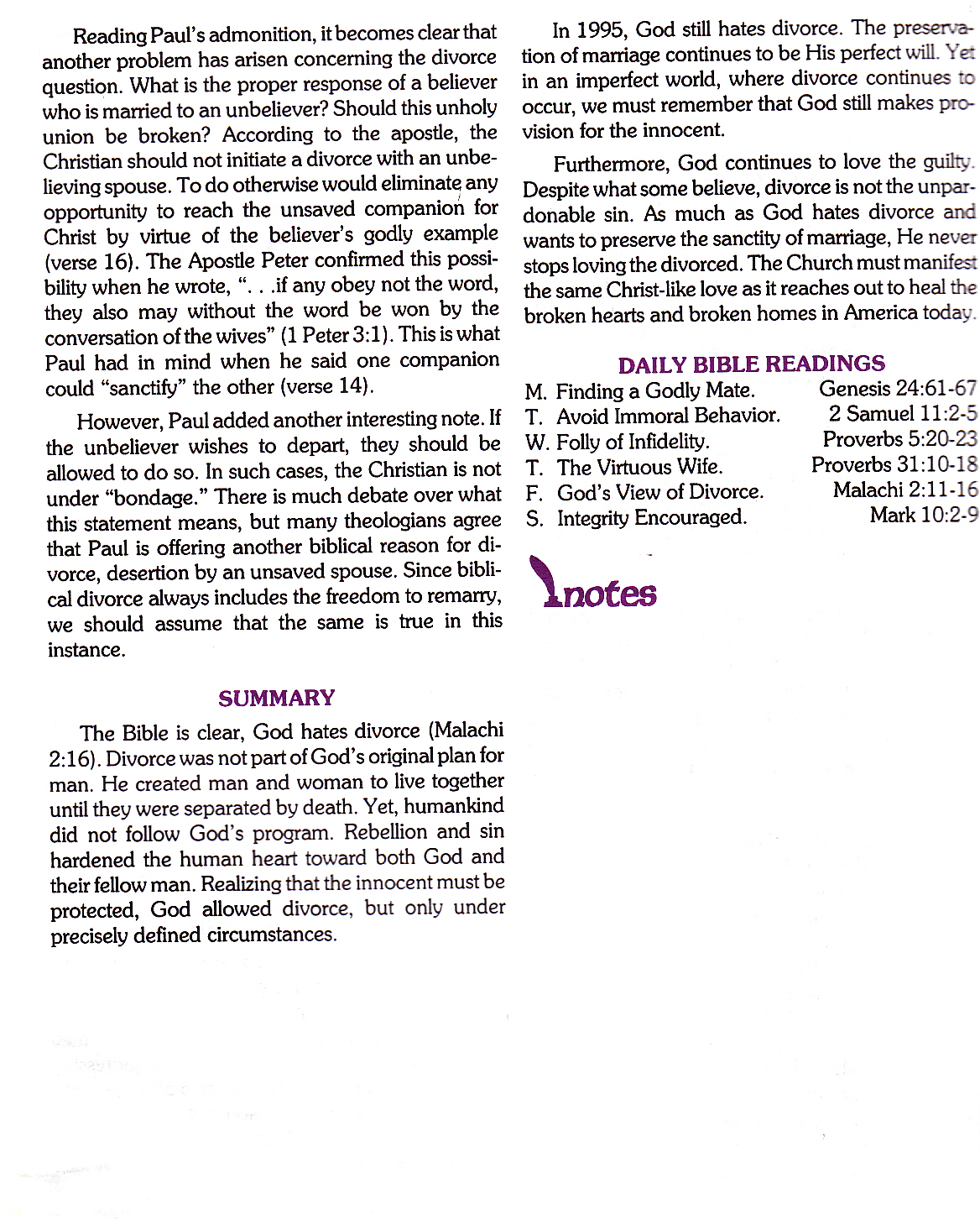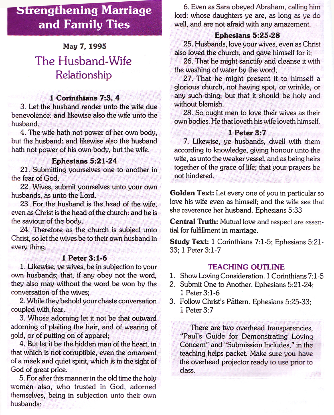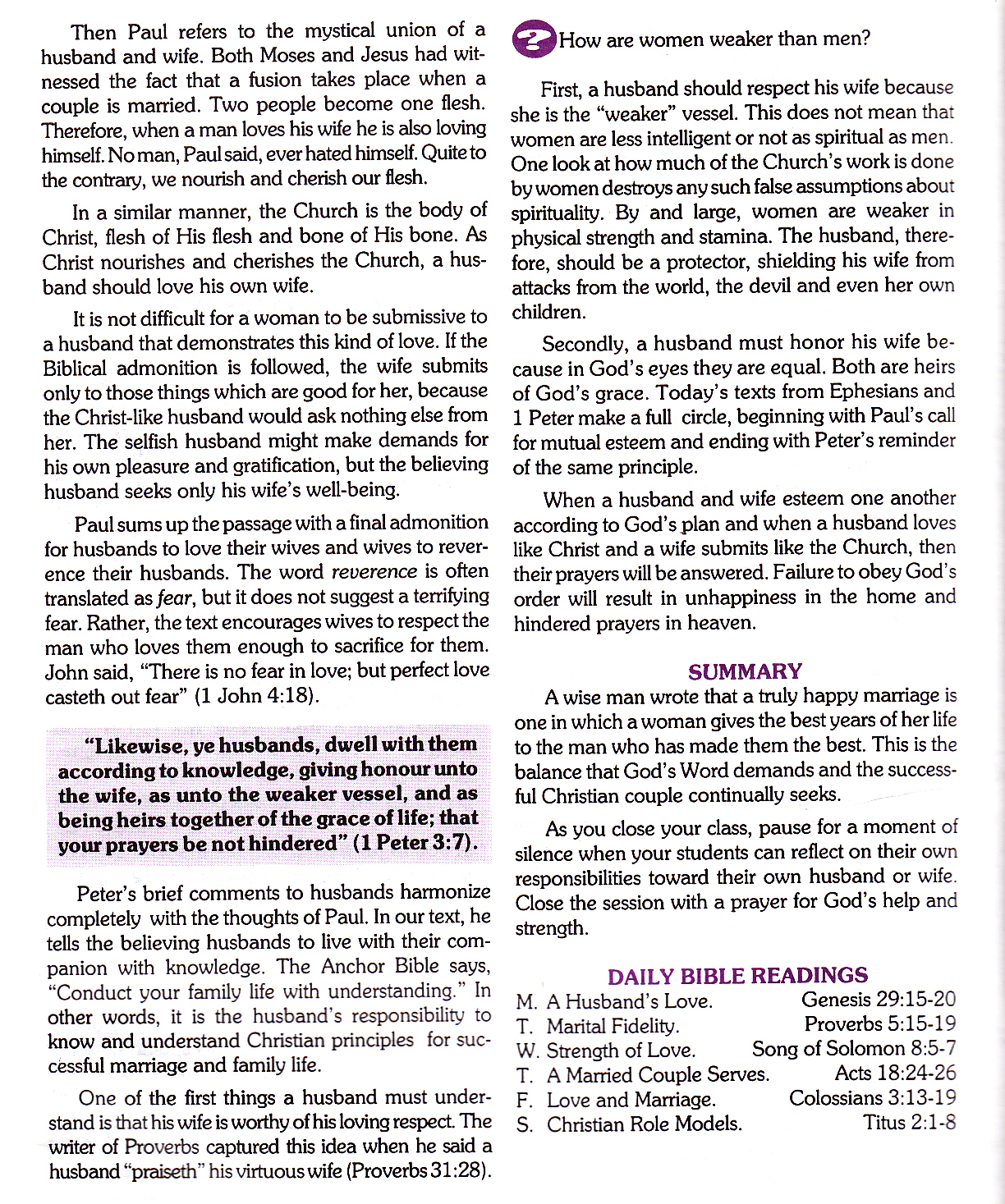 This is the Lesson I gave on Christian Family. I only used chapters 1-3 but I scanned the other chapters. This is from a Sunday School Quarterly I wrote in 1995. I hope it is helpful to you.