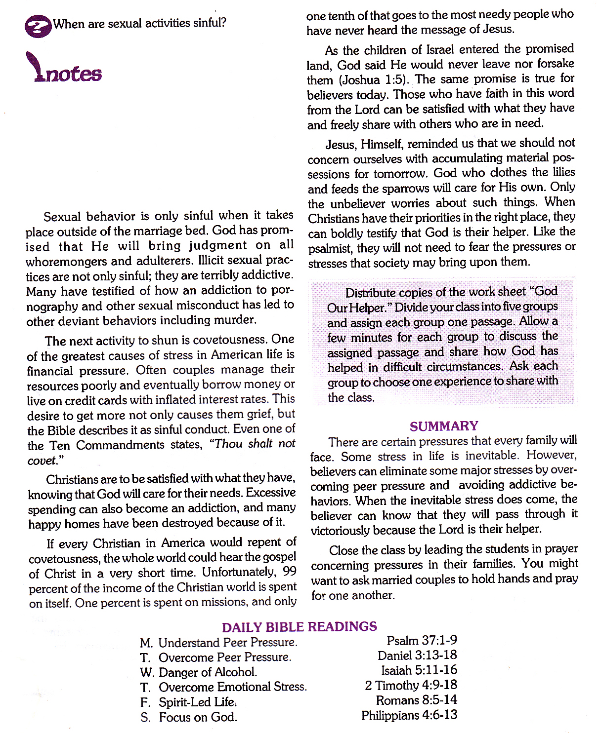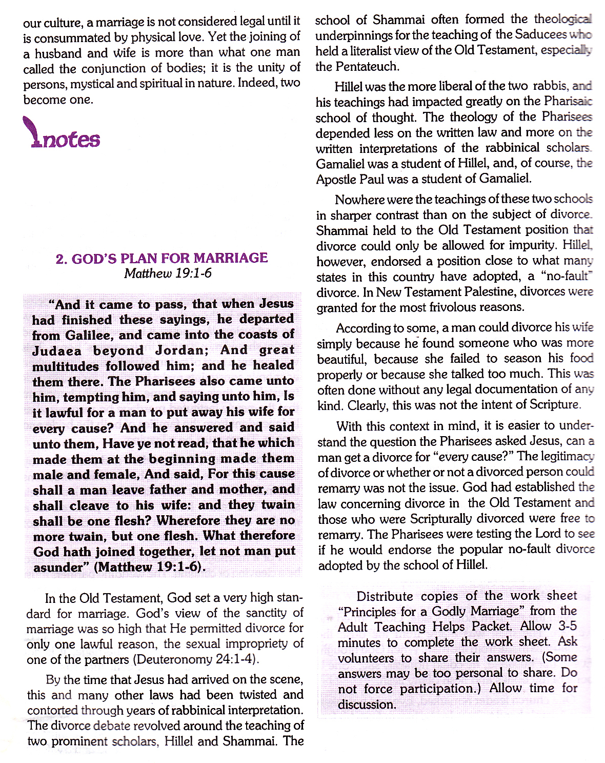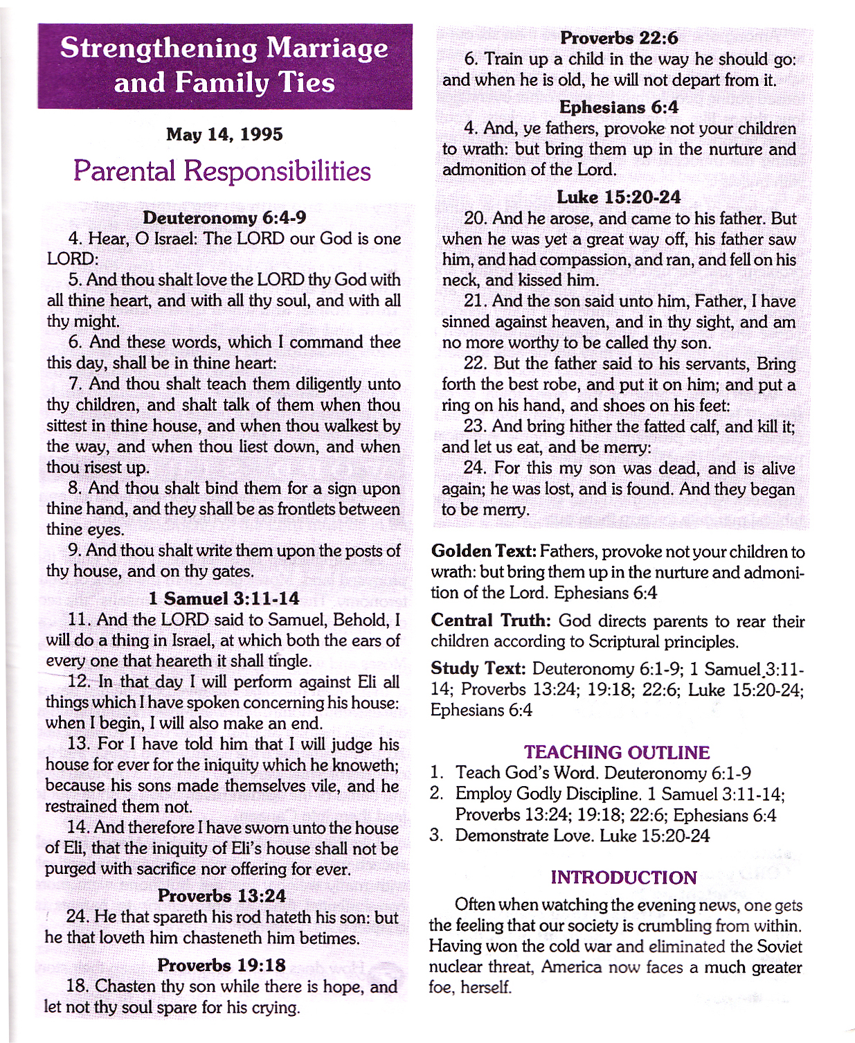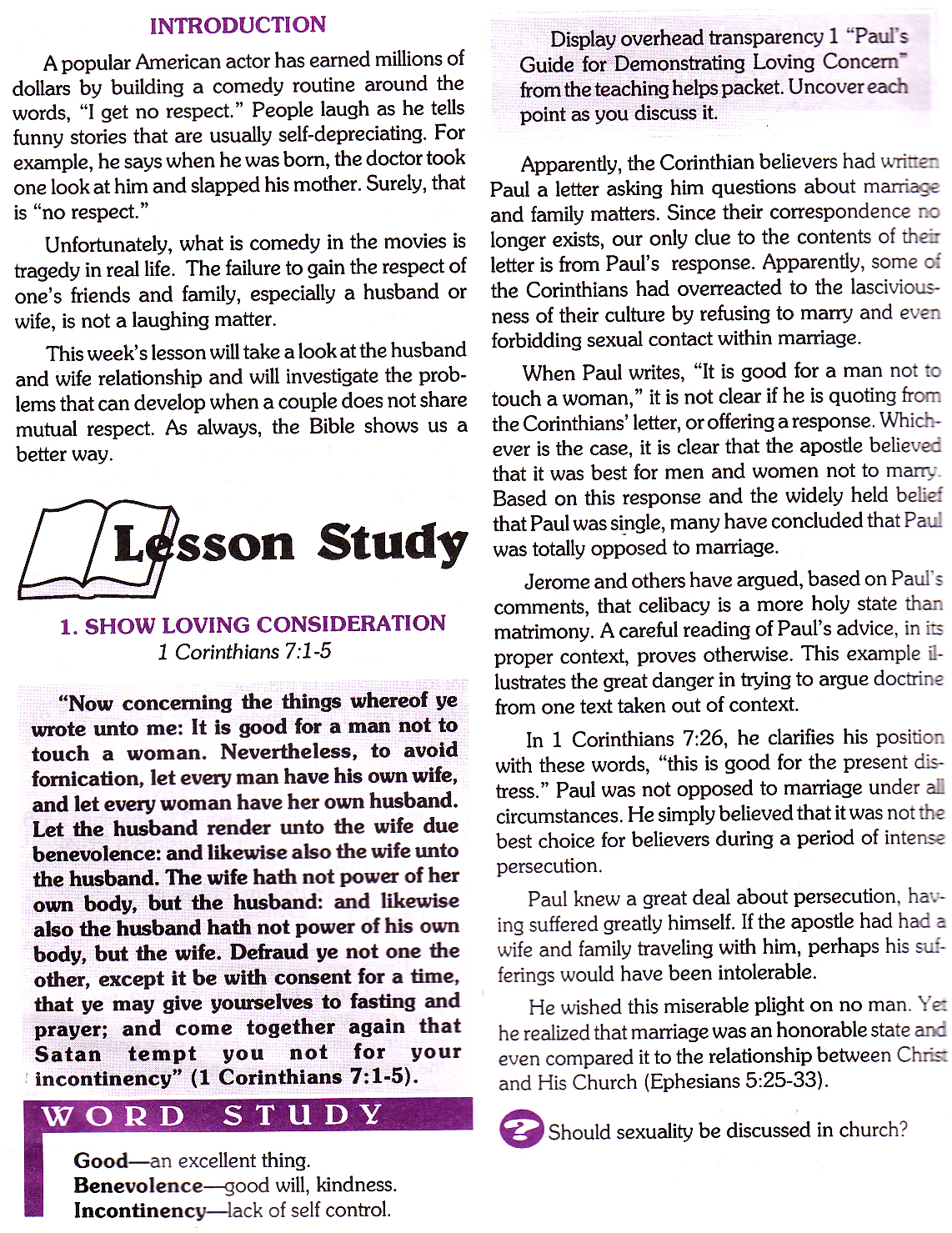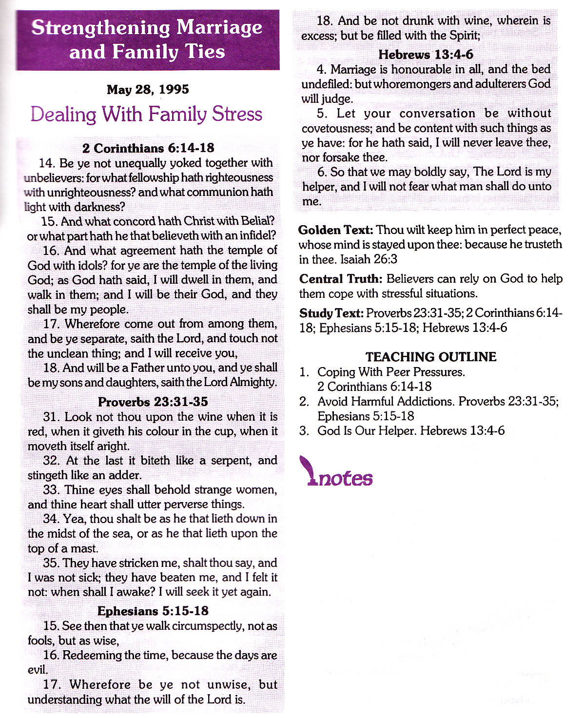 This is the Lesson I gave on Christian Family. I only used chapters 1-3 but I scanned the other chapters. This is from a Sunday School Quarterly I wrote in 1995. I hope it is helpful to you.