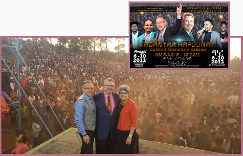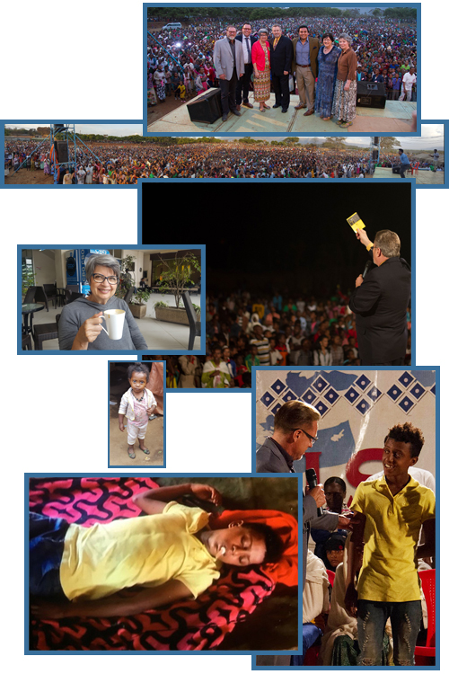 In 2017, Larry and Lynda led a team to Gesuba, Ethiopia for our Harvest Revival. What a harvest! 7,000 first-time converts made a decision for Christ. This was Lynda's first crusade and the kids fell in love with her. Once again, they witnessed some incredible things on the field--things that only God could do. One little girl had a large open sore on her leg. God healed her leg and the sore dried up. Of course, God gets all the glory. He is the one who does it.